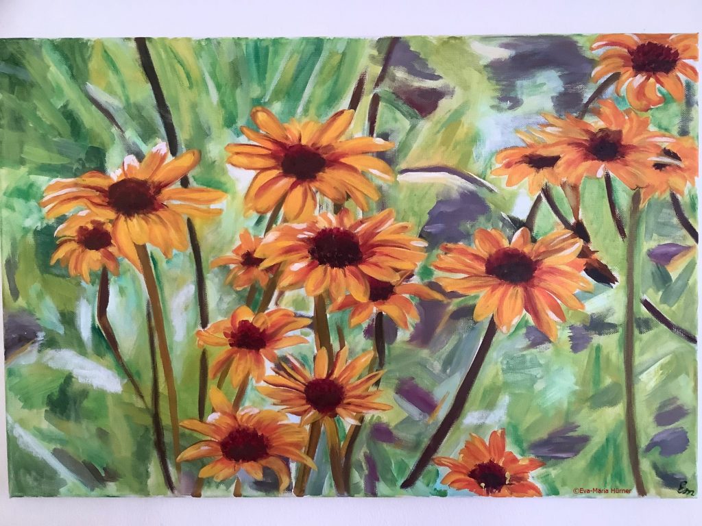 Margeriten ÖL 40 x 60Rosen Öl 50 x 50Tulpe Öl 40 x 40Hortensien Mischtechnik Acryl/Öl 60 x 120Blätter Mischtechnik Acryl/Öl 80 x 100Weinblätter Öl 70 x 100